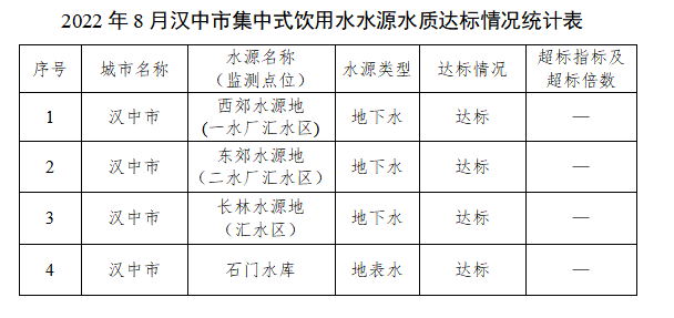 2022年8月,365bet英国_365易贷官网_365bet登录地址监测了市中心城区东郊、西郊、长林、石门水库4个在用集中式生活饮用水水源地水质,市中心城区东郊、西郊、长林水源地为地下水,石门水库水源地为地表水。