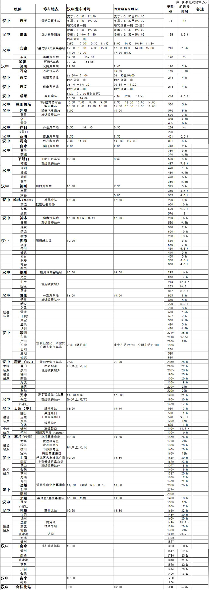 汉中高客站班次详情