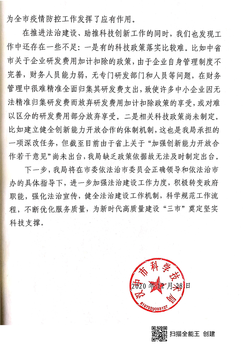 365bet英国_365易贷官网_365bet登录地址科学技术局2020 年法治建设工作总结