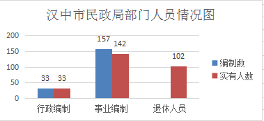 截至2018年底,本部门人员编制190人,其中行政编制33人、事业编制157人;实有人员175人,其中行政33人、事业142人。退休人员102人。