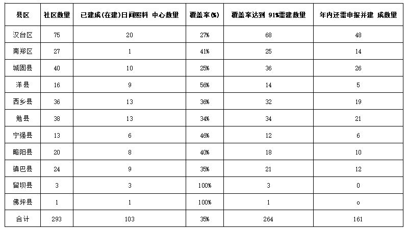 我市现有293个社区,已经建成日间照料中心103个,尚需新建161个日间照料中心才能达到2022年底覆盖90%社区的目标。按照追赶超越,纵向提占比、横向争先进,迈入全省第一方阵的要求,我市确定2021年底前新建161个日间照料中心,提前一年完成任务,各县区建设任务附后。