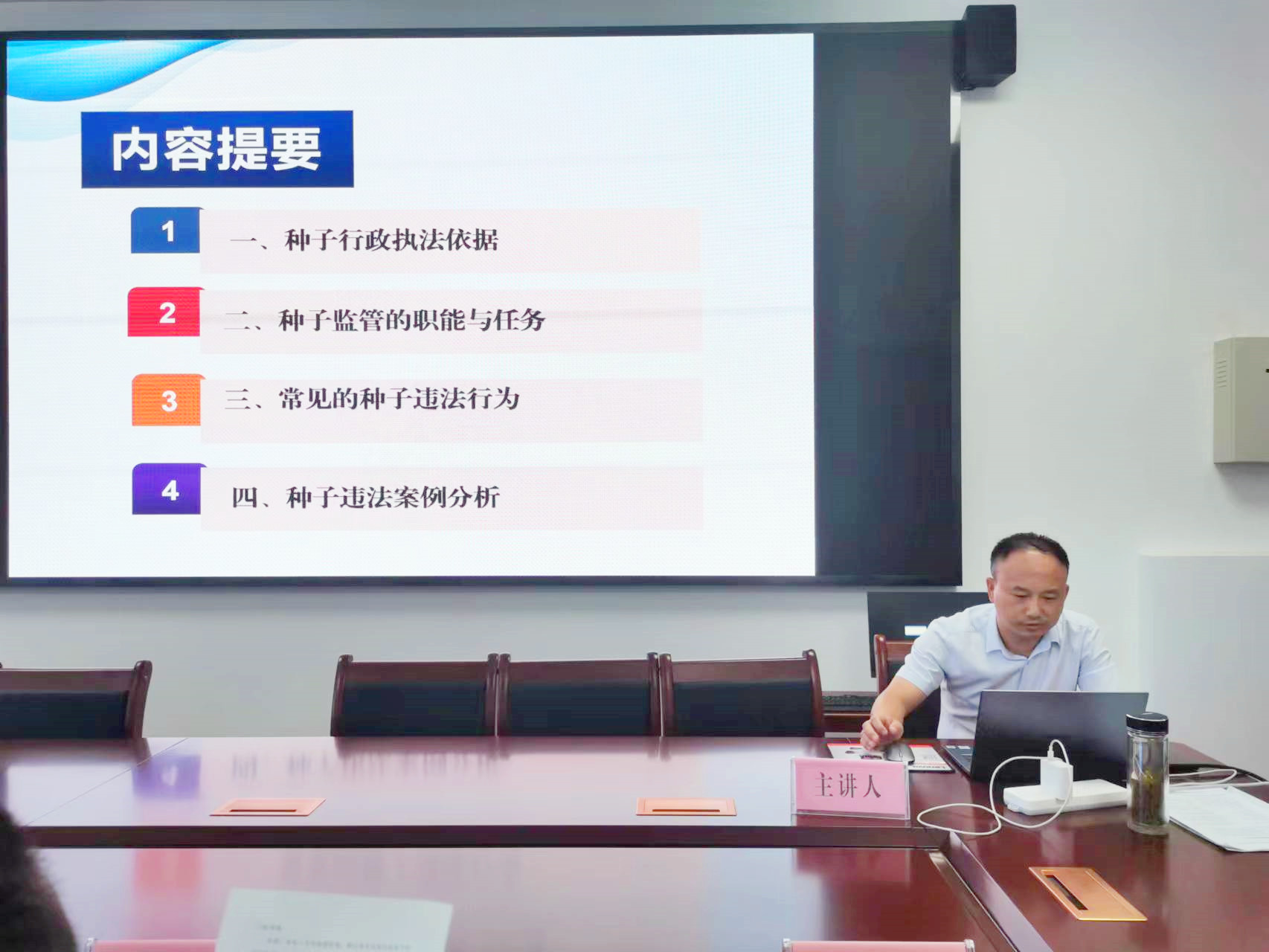 为深入贯彻落实农业农村部关于农业综合执法大练兵的部署和要求,深入开展“五星创建、双强争优”和五型模范机关创建,进一步提升全市农业综合执法人员学习能力、实践能力和综合素养,7月28日,市农业综合执法支队举办今年首期农业综合执法大讲堂(总第六期)。本期大讲堂由市农业综合执法支队党支部书记、支队长王志刚主持,汉台、南郑大队分管领导和种植业领域的执法人员、市支队全体人员共30余人参加。