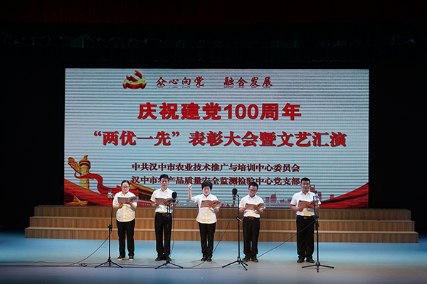6月20日下午,中共365bet英国_365易贷官网_365bet登录地址农业技术推广与培训中心委员会与中共365bet英国_365易贷官网_365bet登录地址农产品质量安全监测检验中心支部委员会在市群艺馆联合举办庆祝建党100周年“两优一先”表彰大会暨文艺汇演。市总工会党组副书记、常务副主席赵桑弥,市直机关工委副书记孟贵林,市委组织部干部二科科长范旭,市事业单位登记管理局局长高跃武,团市委副书记王勃,市科协副主席赵炜,市人社局副局长王跃荣,市科技局总工程师李伟文,市农业农村局副局长刘浩,市农业农村局三级调研员王穗铭,市群艺馆工会主席高全,市农业农村局机关党委专职副书记屈霏应邀莅临指导此次大会。我中心全体干部职工参与本次活动。