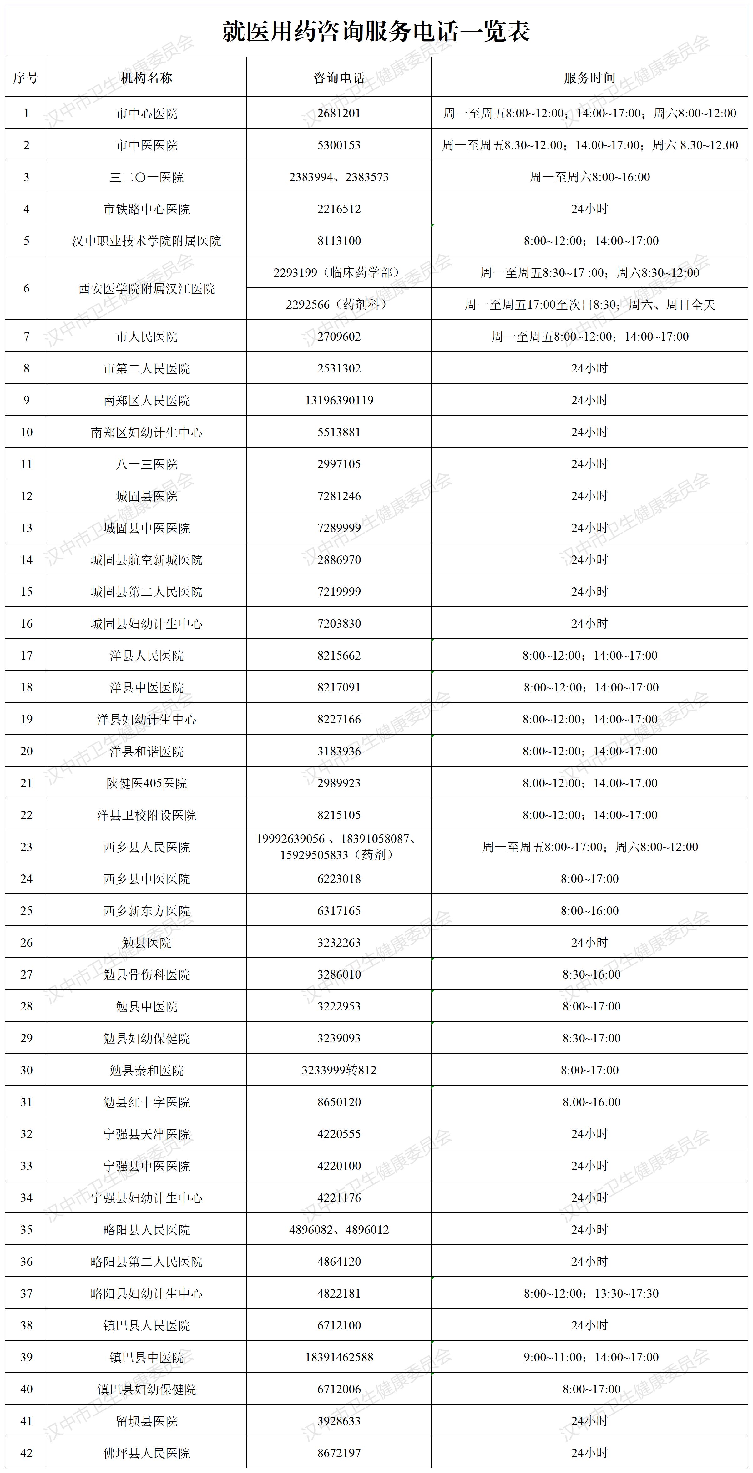 为指导新冠肺炎人员做好居家治疗,现将我市就医用药咨询服务电话通告如下: