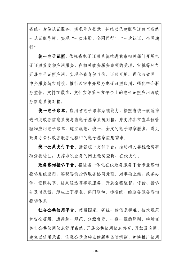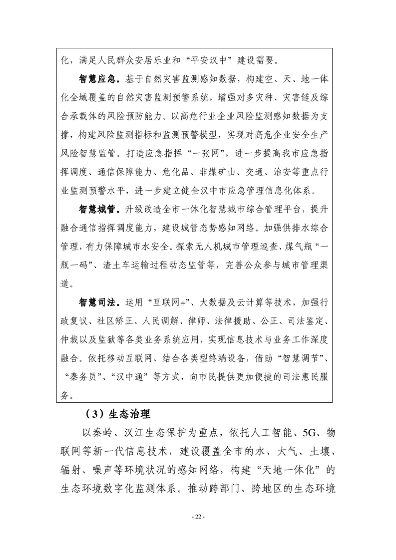 (一)《规划》提出充分利用新一代信息技术,建设汉中物联网管理服务平台、人工智能赋能平台、时空信息云平台以及智慧城市基础信息平台,为全市数字政府建设提供先进的技术支撑。