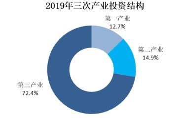 固定资产投资(不含农户)中,第一产业完成投资比上年增长36.6%;第二产业完成投资增长5.4%,其中工业投资增长7.5%;第三产业投资下降8.6%。第一、第二和第三产业投资占比分别为12.7%、14.9%和72.4%。