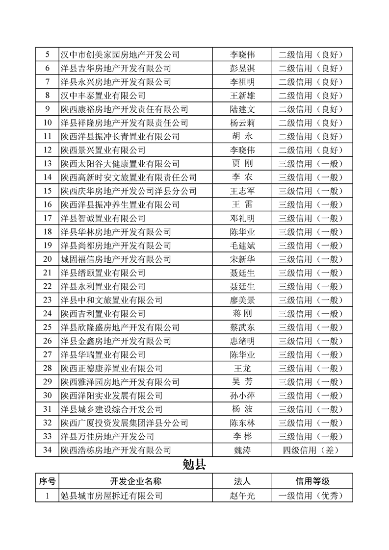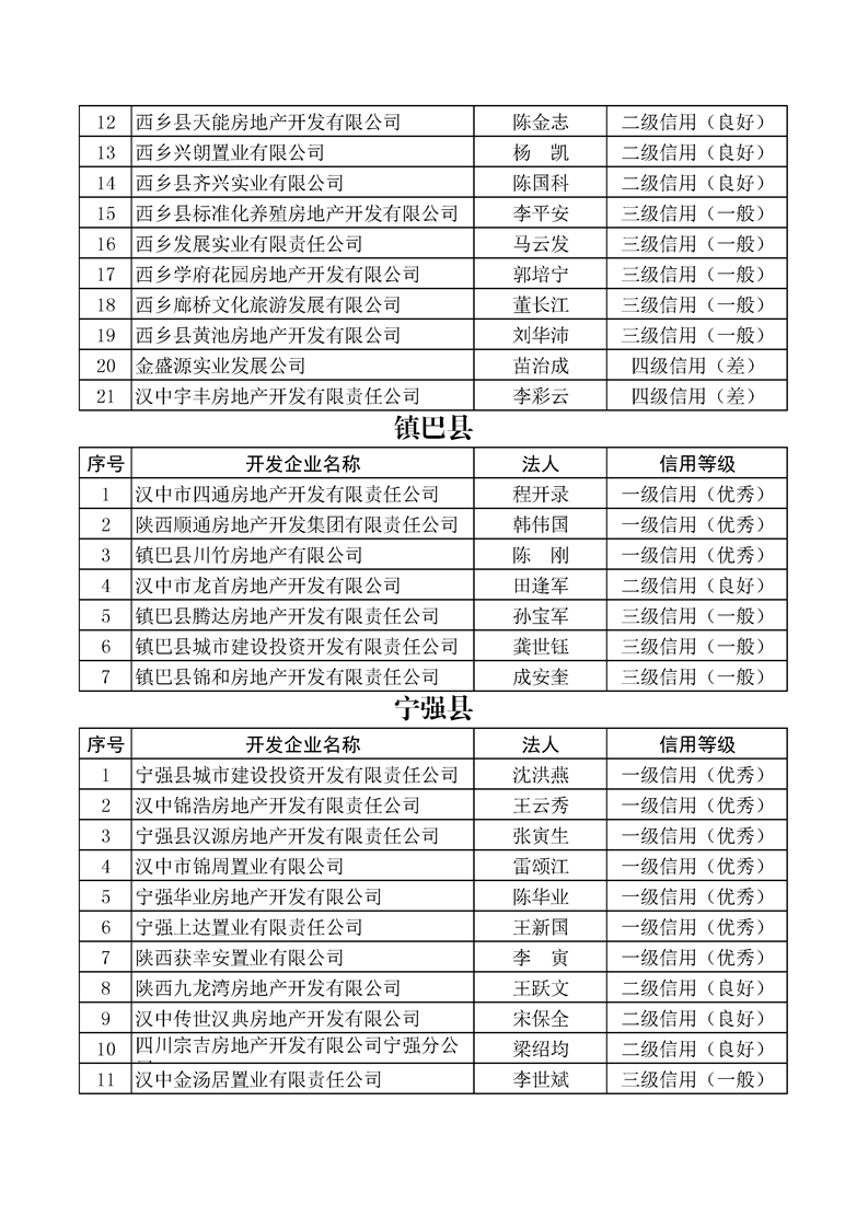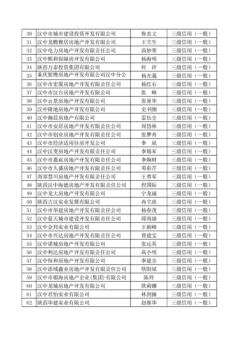 为着力推进我市房地产业信用体系建设,构建以信用为基础的新型监管机制,促进我市房地产行业高质量发展。依据《陕西省房地产开发企业信用信息管理暂行办法》,由市住建局、市发改委(市信用办)联合对全市2021年度房地产开发企业进行了信用等级评定,共评定企业298家,经征求部门意见初审,信用修复(申诉)联评,评定为一级(优秀)信用企业59家,二级(良好)信用企业88家,三级(一般)信用企业123家,四级(差)信用企业28家(同一企业有多个项目的,以项目属地最低的信用等级评定结果为准;信用等级评定结果相同的,以企业注册地评定结果为准)。现将评定结果分别在“信用中国(陕西汉中)”、“365bet英国_365易贷官网_365bet登录地址住建局”及“365bet英国_365易贷官网_365bet登录地址房产交易中心”门户网站予以公示,公示期10天(10月20日——10月29日)。任何单位及个人如对公示意见有异议,可在公示期内向我局或市信用办提出书面陈述,陈述材料需加盖公章或签署真实姓名及电话,逾期不予受理。