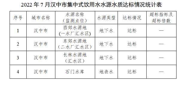 2022年7月,365bet英国_365易贷官网_365bet登录地址监测了市中心城区东郊、西郊、长林、石门水库4个在用集中式生活饮用水水源地水质,市中心城区东郊、西郊、长林水源地为地下水,石门水库水源地为地表水。