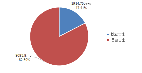 3.本年度支出构成情况。2018年支出10998.55万元。其中:基本支出1914.75万元,项目支出9083.8万元。