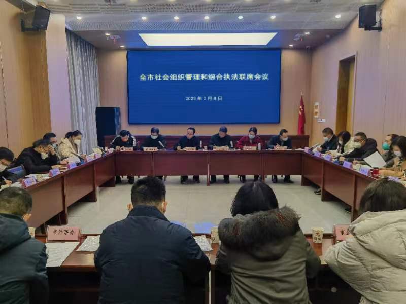 会议强调,一要提高政治站位,充分认识社会组织监管和综合执法工作的重要意义。认真贯彻落实中、省关于社会组织管理工作的决策部署和工作要求,确保社会组织方向正确、发展有力。二要形成联动机制,确保联席会议制度有效发挥作用。要根据工作需要适时调整成员单位及对应职责分工,定期研究解决社会组织管理和综合执法工作中出现的问题。三要坚持主流导向,发展壮大社会组织力量。各成员单位要积极引导社会组织弘扬社会主义核心价值观,坚持正向回馈社会,不断充实“造血功能”,吸纳各领域优秀人才,壮大组织力量。四要坚持依法行政,规范社会组织管理。结合打击非法社会组织、清理“僵尸型”社会组织、规范行业协会商会收费等专项行动,积极开展各部门联合执法工作,依法查处社会组织中存在的违规违法行为。五要畅通信息渠道,形成工作合力。及时通报交流各成员单位掌握的社会组织运行情况,积极协调成员单位间横向沟通联络机制,督促各成员单位认真履行监管职责,形成齐抓共管合力。六要坚持党建引领,加强行业部门对社会组织党建工作的指导力度,以“评星晋级、争创双强”和“五星创建、双强争优”等活动为载体,严格贯彻落实市委基层党建工作安排部署,充分激发社会组织党组织政治引领和战斗堡垒作用。七要围绕中心服务大局,促进社会组织作用发挥。以“三个年”活动为契机,积极推动社会组织参与招商引资、项目落实等工作,持续抓好为企业减负、优化营商环境等工作。深化“党旗领航+振兴合力团”工程,引导更多社会组织参与乡村振兴工作。八要加强督查考核,确保目标任务顺利完成。坚持平时督查与年终考核相结合,定期对各成员单位履行职责情况及联席会议议定事项进行督查考核,确保各项措施落实到位。
