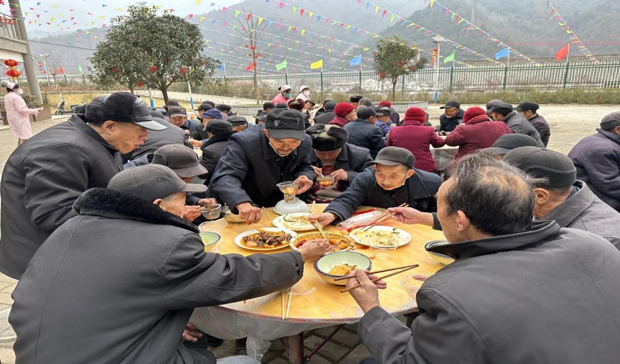 中午时分,一盘盘香喷喷、热腾腾,色香味俱佳的菜肴便端上饭桌。鲜嫩可口的狮子头、酸菜炒猪肝、米粉肉、炒肉丝,还有带着泥土芳香的折耳根猪杂汤、江口名汤酸汤和洋芋米饭……令人食欲大增,自然生出口水。老人们围坐一桌,边吃边聊,说说笑笑一派热闹景象。席间,大家在轻松喜悦的氛围中忆过去、话未来,祝愿新的一年日子越过越红火。(留坝县中心敬老院 唐鹏)