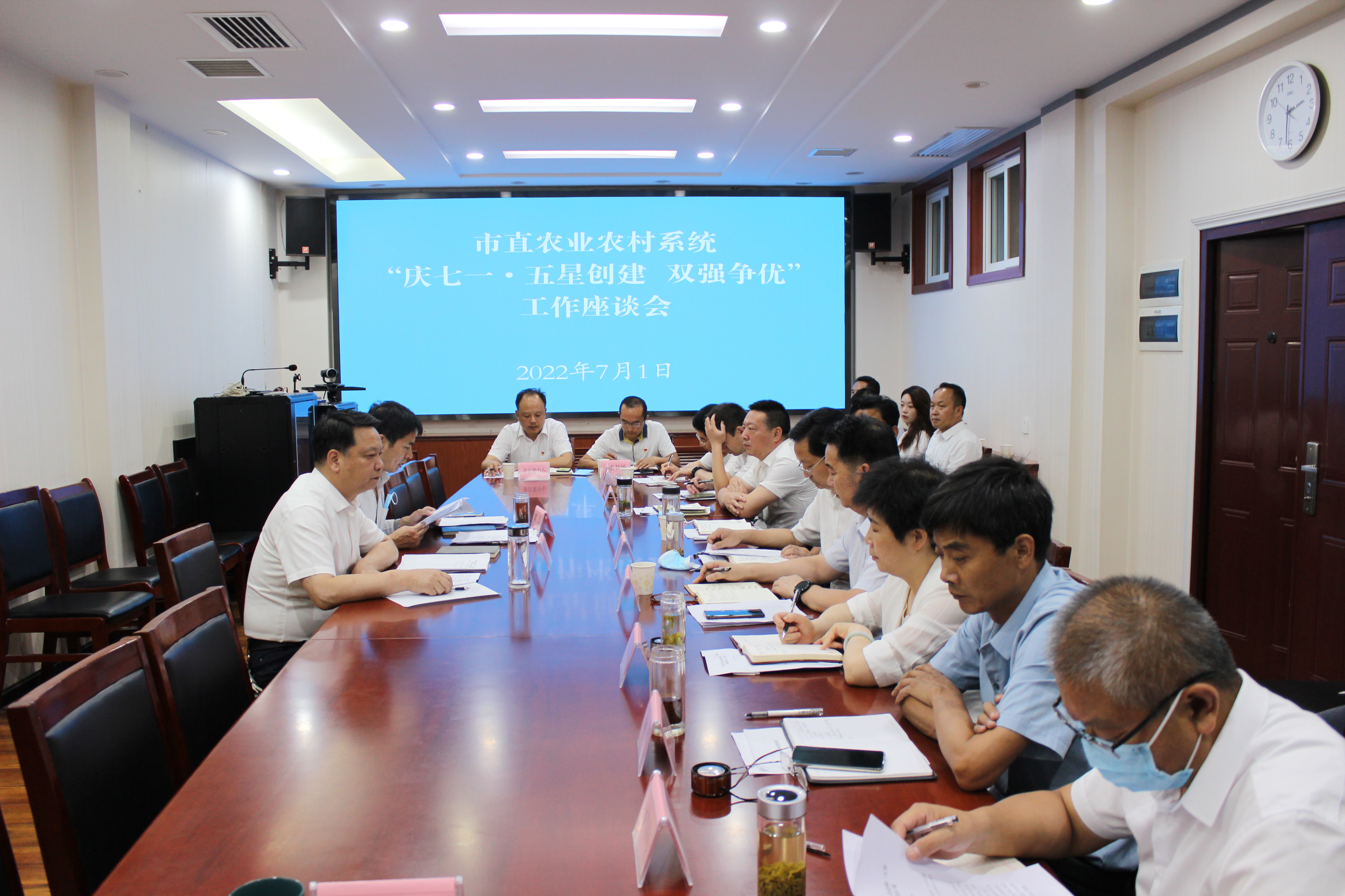 座谈交流推动双强争优。7月1日下午,市直农业农村系统召开“庆七一·五星创建、双强争优”工作座谈会,系统11个党支部结合实际,就如何做好“五星创建、双强争优”活动和“五型模范机关”创建工作进行了深入交流。系统各级党组织要进一步提高政治站位、深化认识,采取切实有力的措施,推动“五星创建、双强争优”活动高点起步、务实管用、走深走实。
