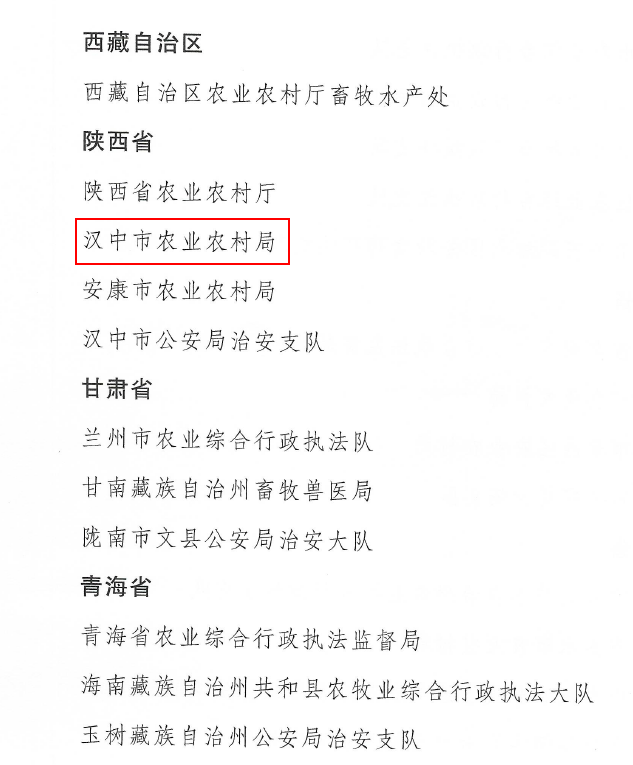 近日,农业农村部、公安部、中国海警局联合印发《对2022年渔业执法系列专项行动工作突出的集体和个人表扬的通报》(农办渔〔2022〕25号),对全国工作突出的172个集体和285名个人予以通报表扬。汉中市农业农村局被评为2022年渔政执法系列专项行动突出集体,受到通报表扬。