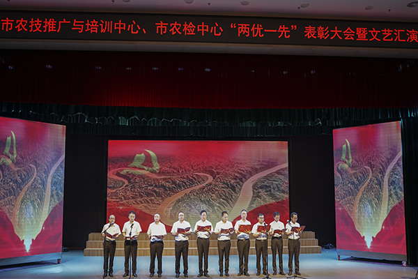 6月20日下午,中共365bet英国_365易贷官网_365bet登录地址农业技术推广与培训中心委员会与中共365bet英国_365易贷官网_365bet登录地址农产品质量安全监测检验中心支部委员会在市群艺馆联合举办庆祝建党100周年“两优一先”表彰大会暨文艺汇演。市总工会党组副书记、常务副主席赵桑弥,市直机关工委副书记孟贵林,市委组织部干部二科科长范旭,市事业单位登记管理局局长高跃武,团市委副书记王勃,市科协副主席赵炜,市人社局副局长王跃荣,市科技局总工程师李伟文,市农业农村局副局长刘浩,市农业农村局三级调研员王穗铭,市群艺馆工会主席高全,市农业农村局机关党委专职副书记屈霏应邀莅临指导此次大会。我中心全体干部职工参与本次活动。