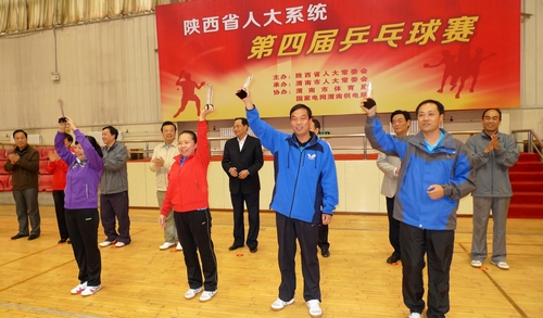 全省人大系统乒乓球赛,是由省人大和汉中人大共同发起设立,于2010年11月在汉中举办首届比赛,每年一届,由陕北、关中、陕南各市轮流举办,至今已四届,先后在汉中、榆林、咸阳、渭南举办,比赛设男、女团体赛。随着比赛赛制的逐步完善,从上至下各级人大高度重视,纷纷把这项赛事作为加强人大交流,展示干部职工风采的极好平台,同时也是全省人大系统对外宣传的一张亮丽的名片。我市成功承办了首届比赛,并在比赛中取得了男子团体第五名,女子团体第一名(男、女团体赛分别取前六名)的好成绩。