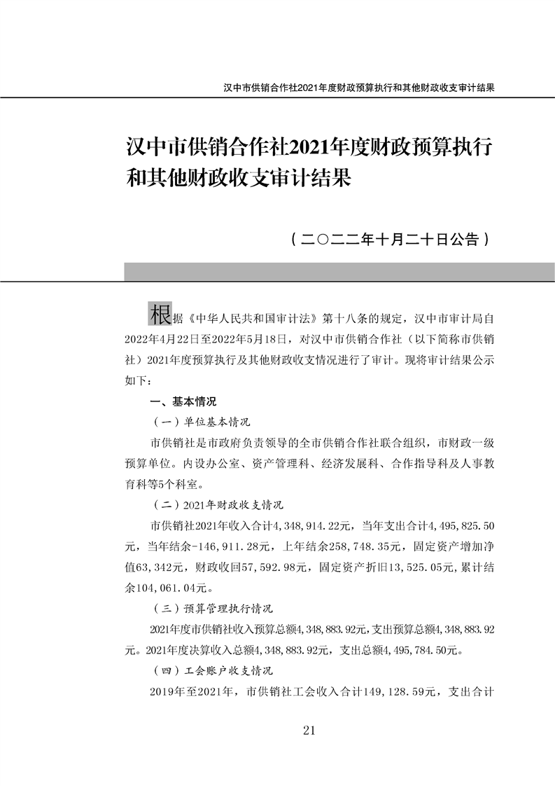365bet英国_365易贷官网_365bet登录地址供销合作社2021年度财政预算执行和其他财政收支审计结果