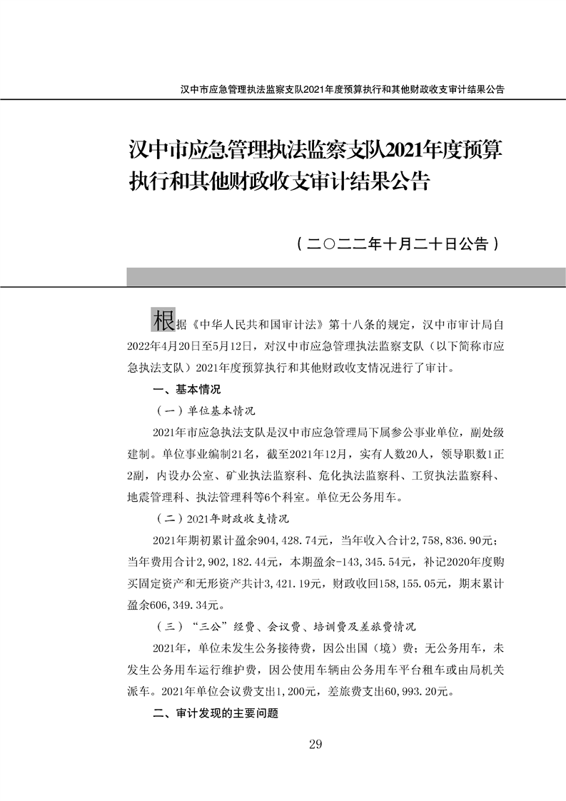 365bet英国_365易贷官网_365bet登录地址应急管理执法监察支队2021年度预算执行和其他财政收支审计结果公告
