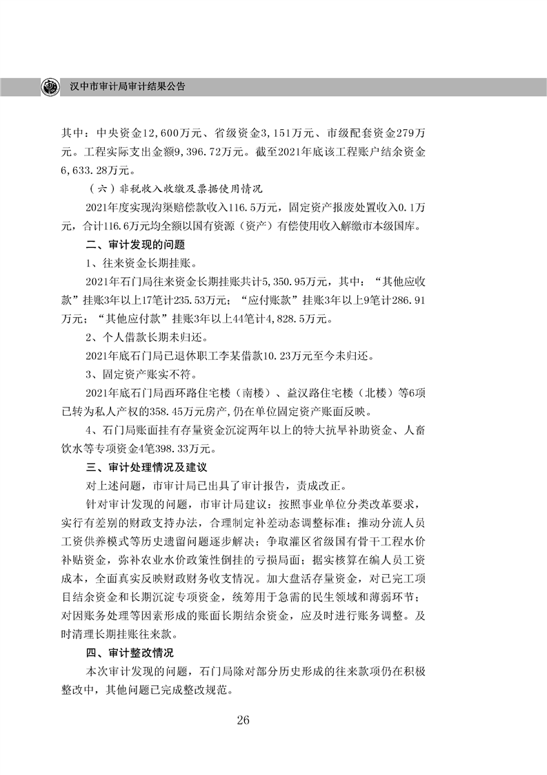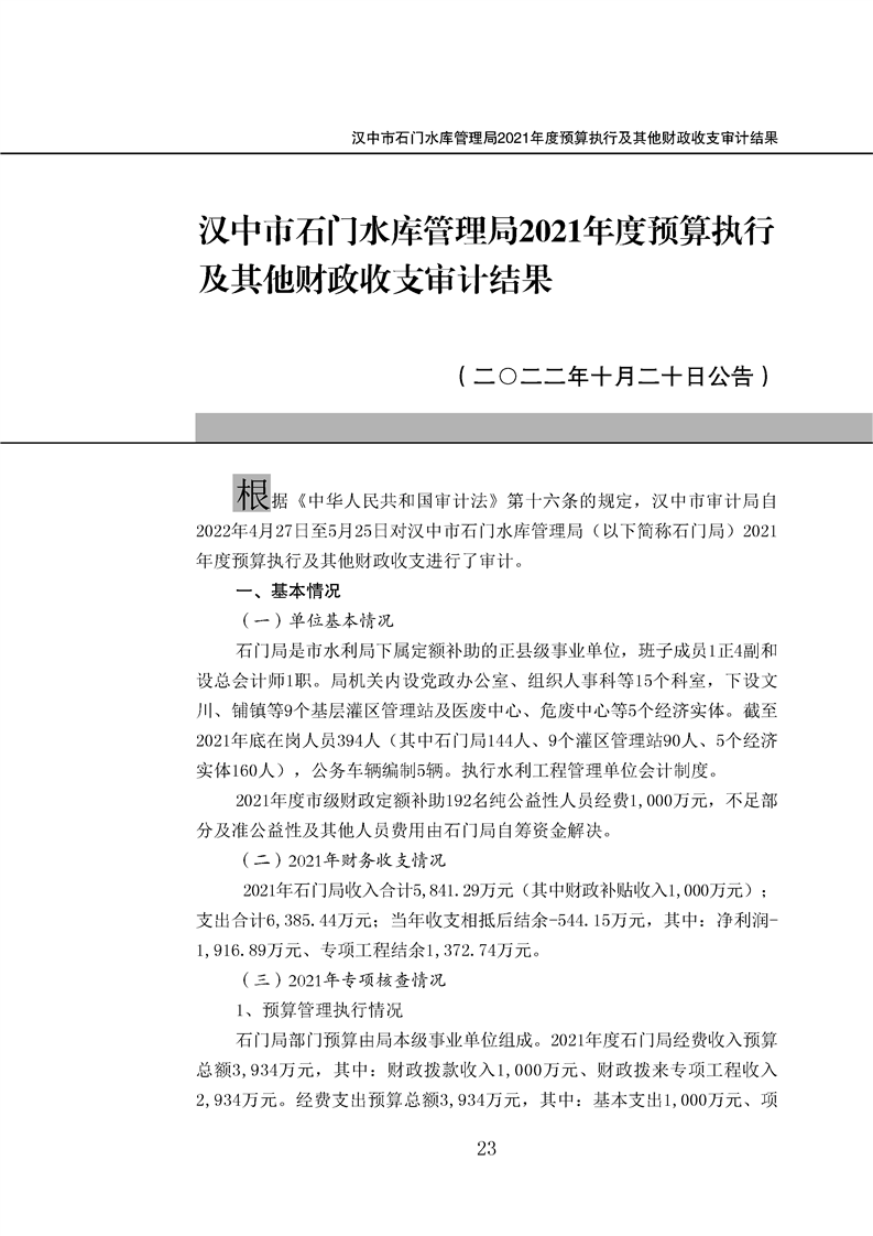 365bet英国_365易贷官网_365bet登录地址石门水库管理局2021年度预算执行及其他财政收支审计结果