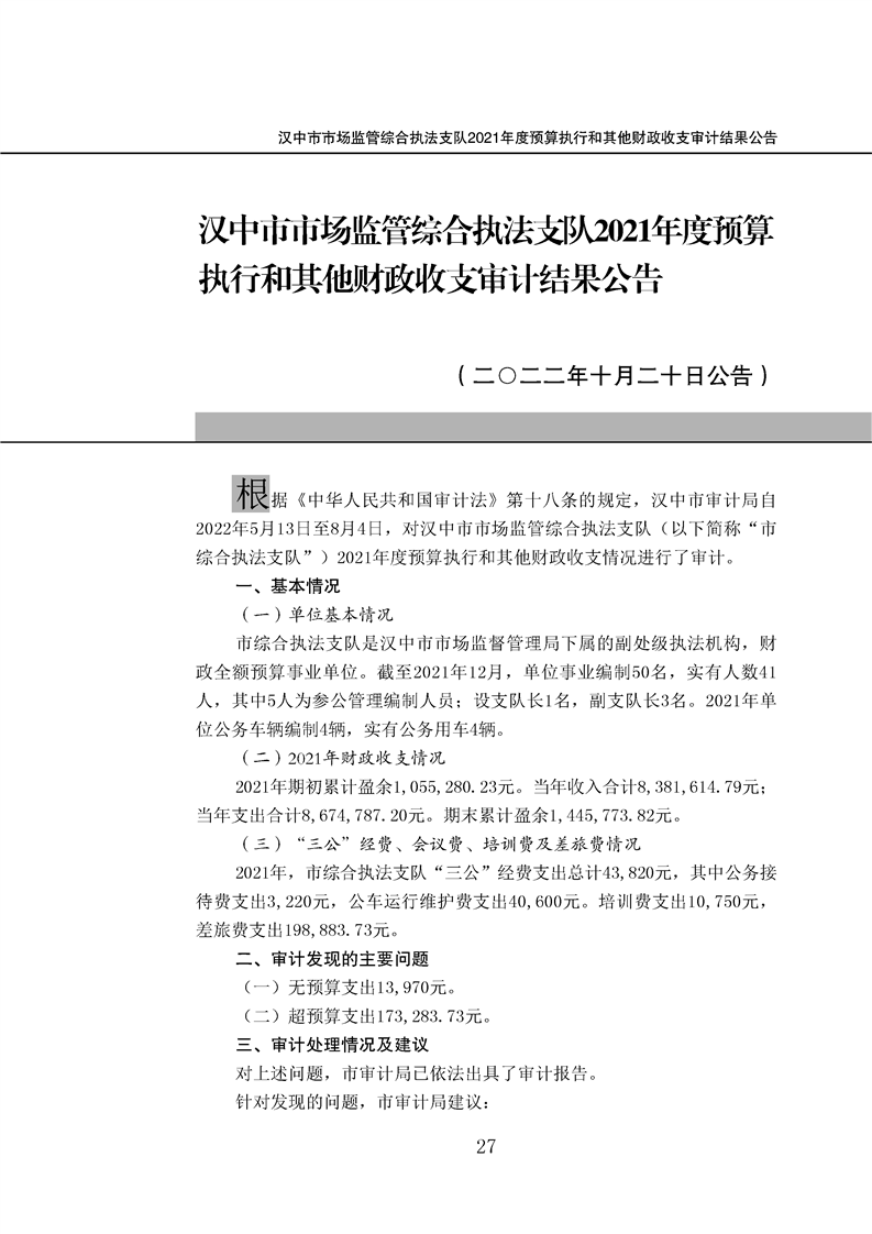365bet英国_365易贷官网_365bet登录地址市场监管综合执法支队2021年度预算执行和其他财政收支审计结果公告