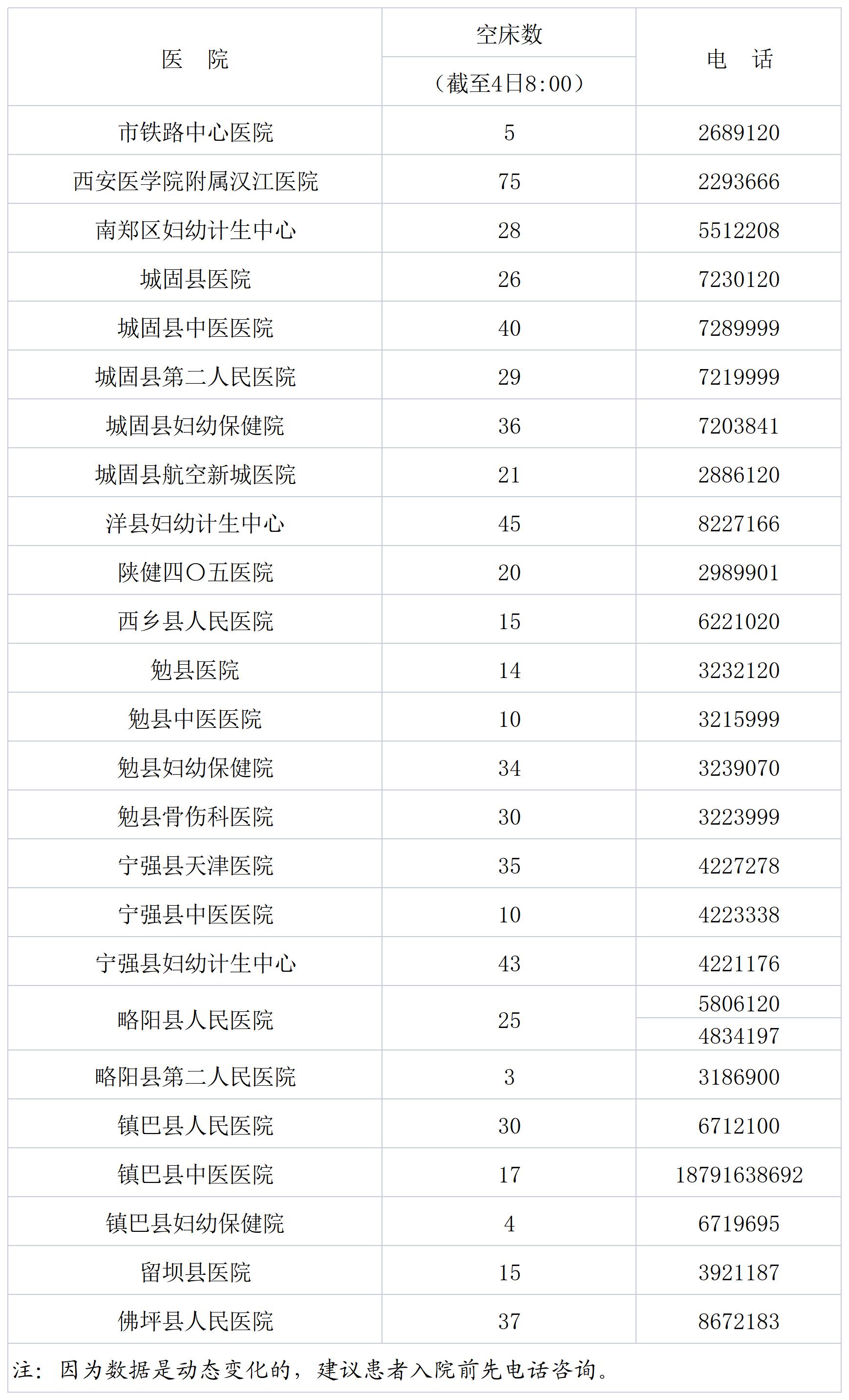 关于公布部分二级医院空床数的通告(截至4日8:00)