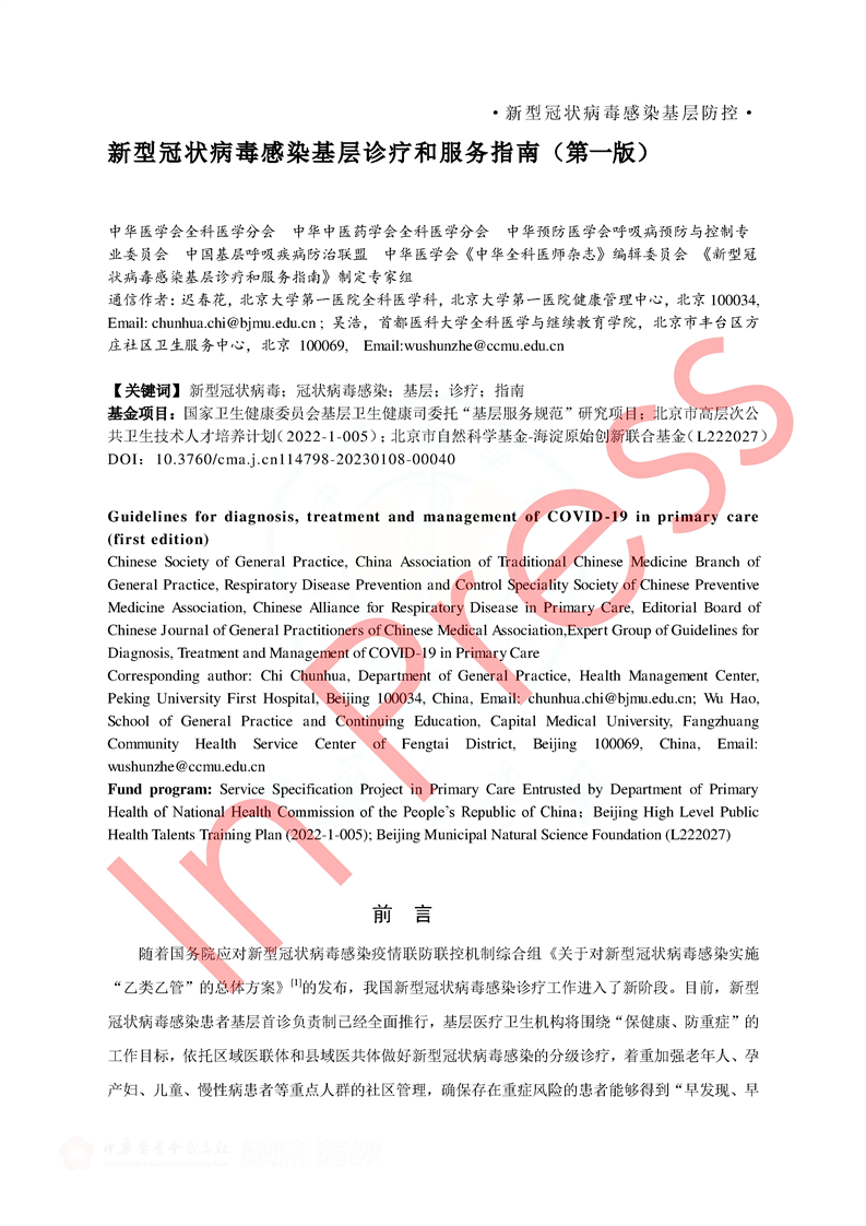 新型冠状病毒感染基层诊疗和服务指南(第一版)
