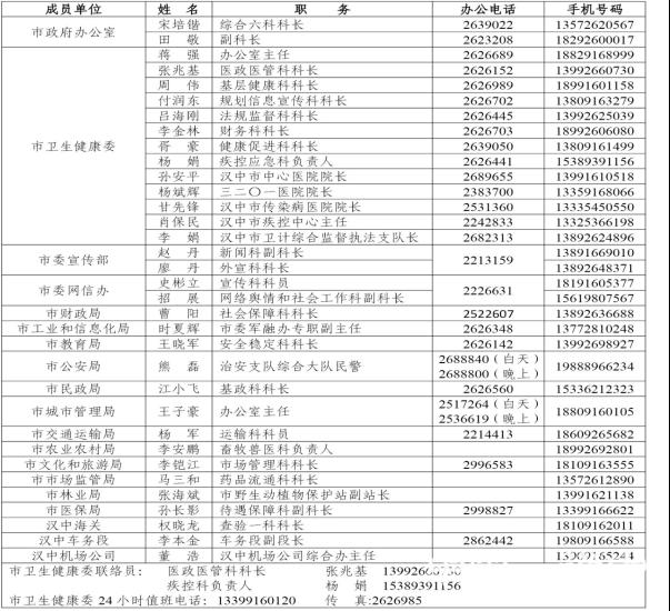 联防联控工作机制联络员名单