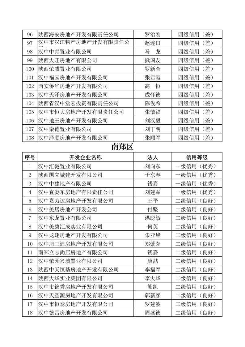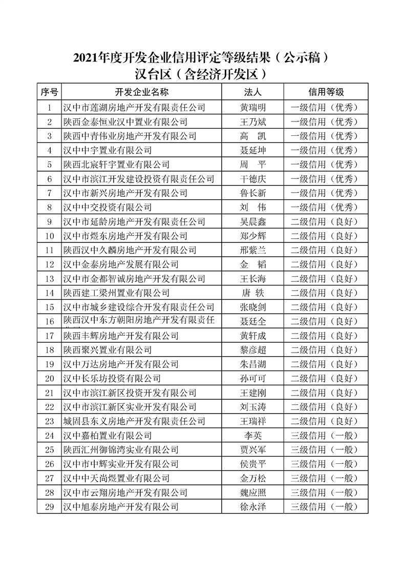 为着力推进我市房地产业信用体系建设,构建以信用为基础的新型监管机制,促进我市房地产行业高质量发展。依据《陕西省房地产开发企业信用信息管理暂行办法》,由市住建局、市发改委(市信用办)联合对全市2021年度房地产开发企业进行了信用等级评定,共评定企业298家,经征求部门意见初审,信用修复(申诉)联评,评定为一级(优秀)信用企业59家,二级(良好)信用企业88家,三级(一般)信用企业123家,四级(差)信用企业28家(同一企业有多个项目的,以项目属地最低的信用等级评定结果为准;信用等级评定结果相同的,以企业注册地评定结果为准)。现将评定结果分别在“信用中国(陕西汉中)”、“365bet英国_365易贷官网_365bet登录地址住建局”及“365bet英国_365易贷官网_365bet登录地址房产交易中心”门户网站予以公示,公示期10天(10月20日——10月29日)。任何单位及个人如对公示意见有异议,可在公示期内向我局或市信用办提出书面陈述,陈述材料需加盖公章或签署真实姓名及电话,逾期不予受理。