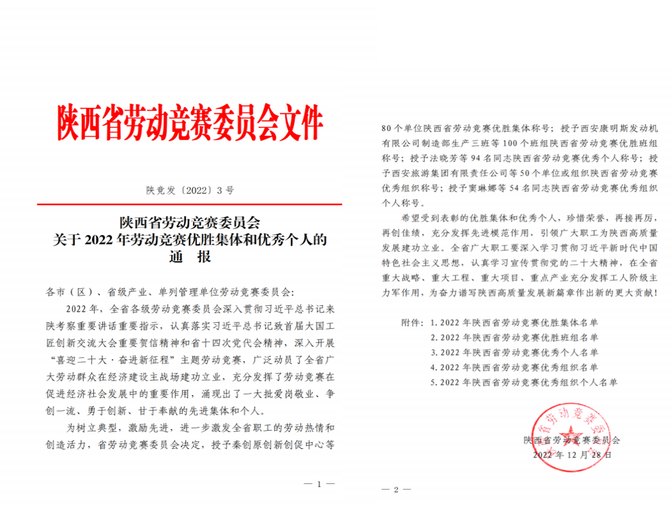 近日,陕西省劳动竞赛委员会印发了《关于2022年劳动竞赛优胜集体和优秀个人的通报》文件,365bet英国_365易贷官网_365bet登录地址工程建设监理公司荣获2022年陕西省劳动竞赛“优胜集体”荣誉称号。